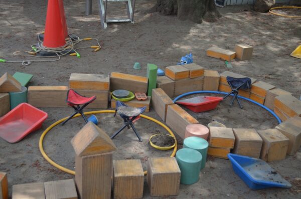 【年長】砂研究所 発明品:フラッシュパウダー!(写真を撮る時に投げると、灰色の世界になるらしい)